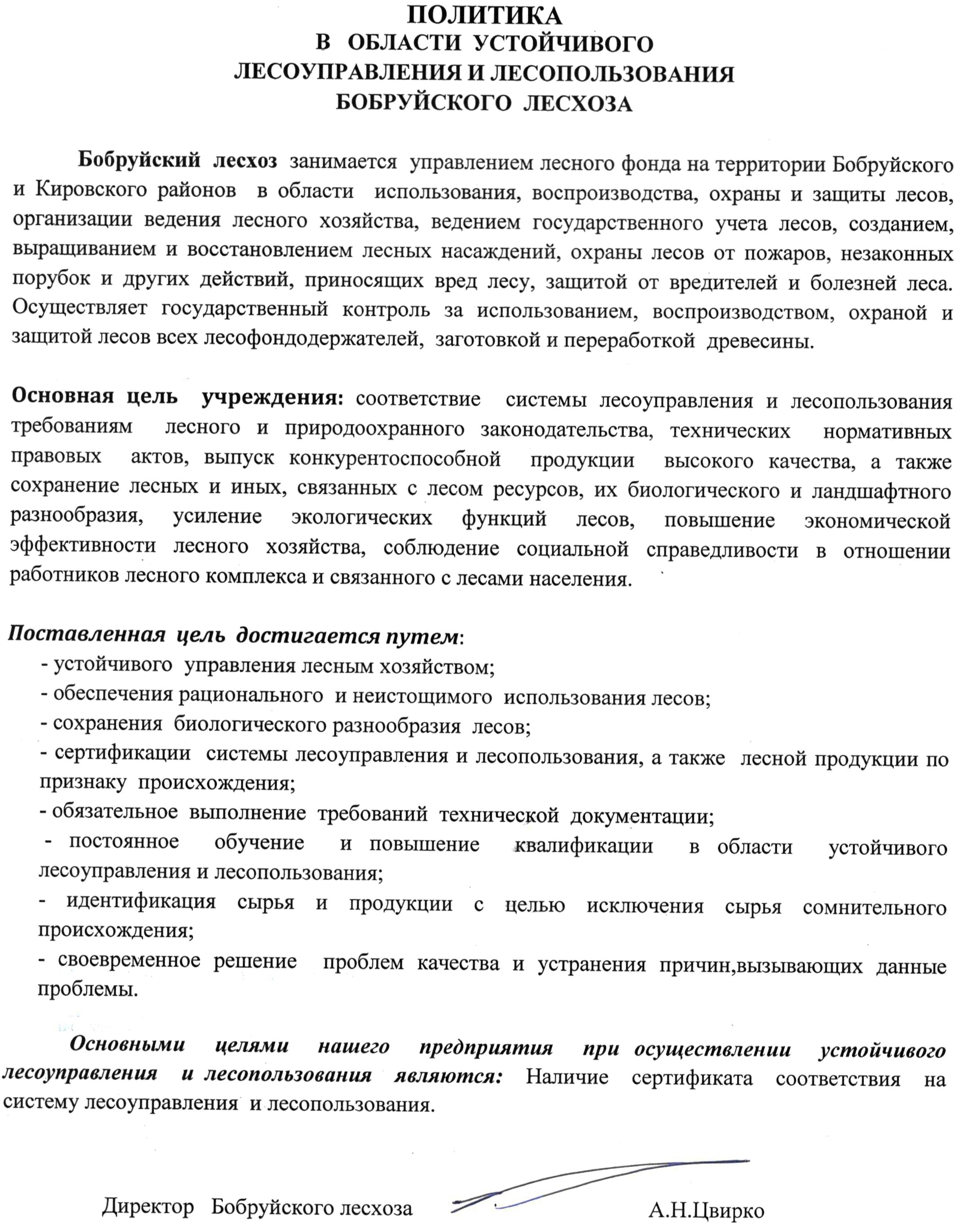 Сертификат соответствия на систему лесоуправления и лесопользования: